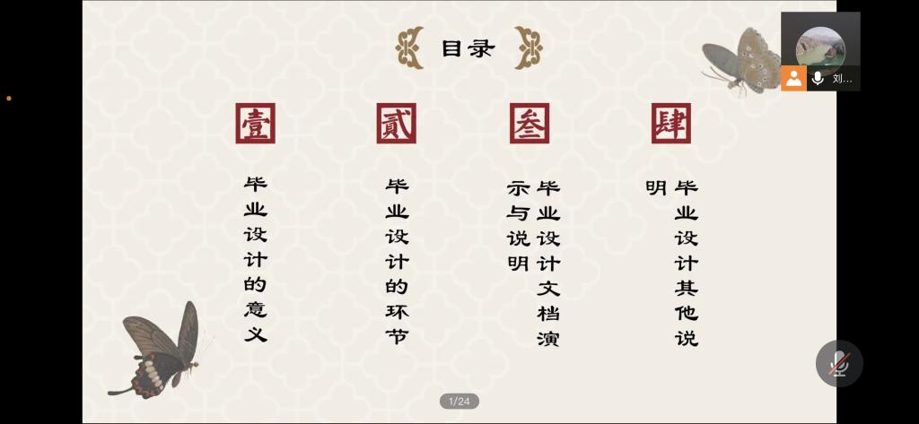 刘凤华教授结合学院实际及自己多年毕业设计指导经验,就毕业设计题目审题、师生互选、开题、中期检查、软硬件验收、论文查重以及答辩等流程和相关要求进行了全面介绍,并详细讲解了毕业设计相关文档及毕业论文撰写要求与规范。