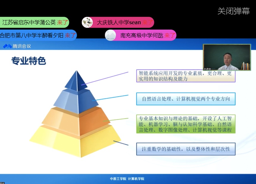 本次招生宣传直播活动分为四个专业专场,计科系主任王海龙以“计算新世界 数字新时代”为主题,网络系副主任张茜以“万物互联 网络为基”为主题、信息安全系副主任单芳芳、骨干教师高丽平以“信息通未来 安全稳天下”为主题,人工智能系副主任许进忠以“人工智能 改变未来”为主题,通过线上直播平台全方位向考生和家长介绍黄瓜视频概况