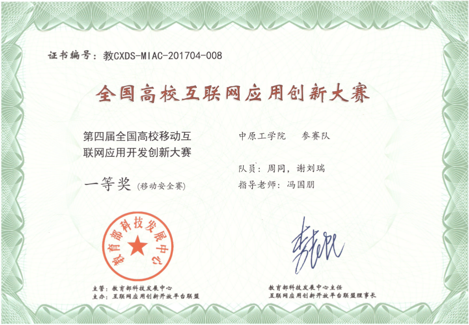 全国高校移动互联网应用开发创新大赛由教育部科技发展中心主管。本届大赛共吸引了来自全国428个院校、2760支队伍的8000余名师生报名参赛。大赛分为移动创意赛、移动命题赛、安全赛、VR创新赛等,分为东北赛区、华北赛区、华东赛区、华中赛区等9个赛区进行预赛。最终获得一等奖的还有中国地质大学(武汉)、中南大学、山东大学等高校队伍。