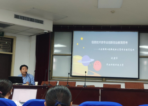 师生作了题为《信息技术类专业创新创业思考——以“互联网+”创新创业大赛项目培育为例》的“互联网+”专题讲座。