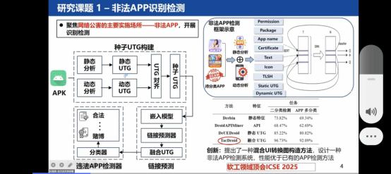 在讲解过程中,许教授还分享了团队在APP广告暗黑模式数据集构建、AI伴侣安全性评估、APP签名滥用及应用年龄分级等多个实际应用领域的探索经验,并指出当前黑灰产业链对网络生态的深刻影响,呼吁科研人员积极参与到移动生态安全治理中。