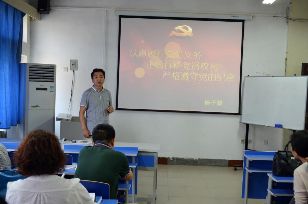 党总支在9号楼524组织全体党员上党课学党章。学院党总支按照学校党委“两学一做”学习教育的部署和总支的安排,由总支书记杨子卿同志带领大家学习党章,并结合本人的学习体会,为全体党员上了一堂题为“认真履行党员义务,正确行使党员权利,严格遵守党的纪律”的精彩党课。