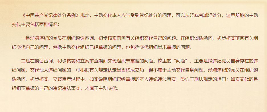 纪律处分条例中的“主动交代”指什么