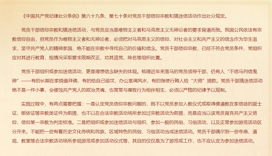 关于党员信仰宗教、搞迷信活动的处分规定