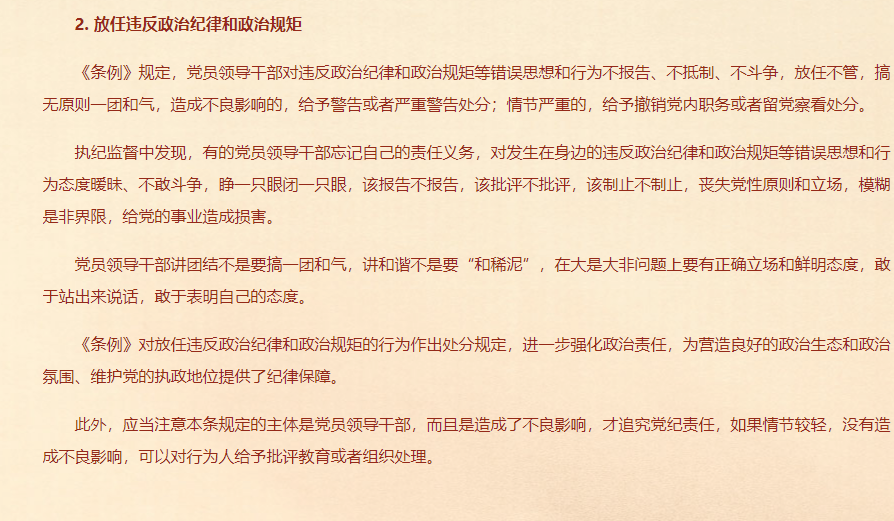 关于履行管党治党政治责任失职的处分规定