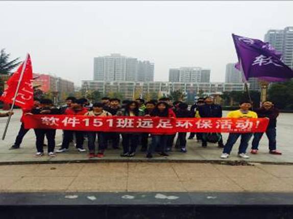 2015年11月22日, 黄瓜视频 软件151团支部全体成员在新郑市富源广场举行了以“出行去白,绿色环保”为主题的团日活动。