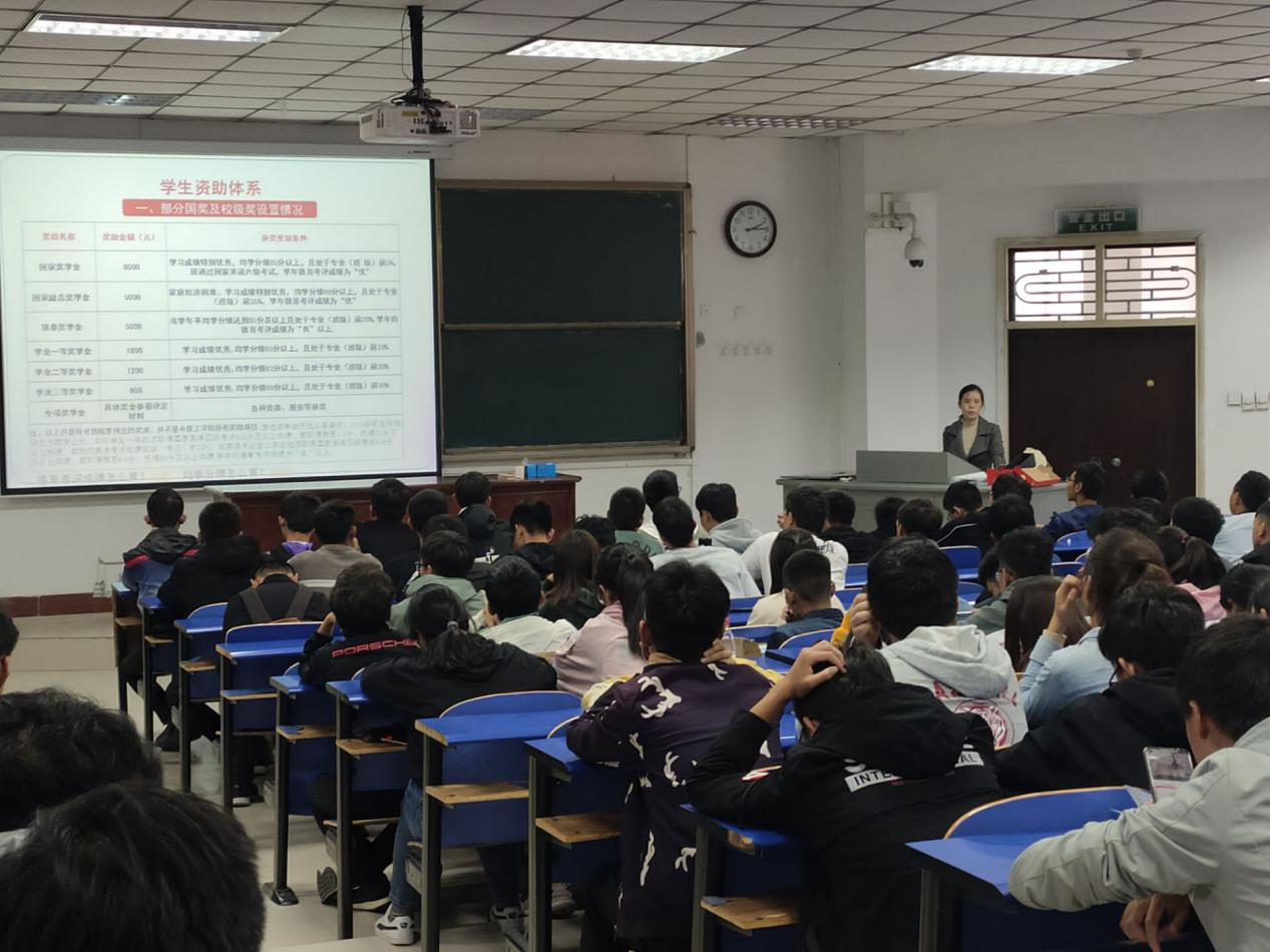 奖助贷相关政策的宣讲于四号教学楼101召开,由孙奇峰辅导员进行主持,19级全体同学参加。