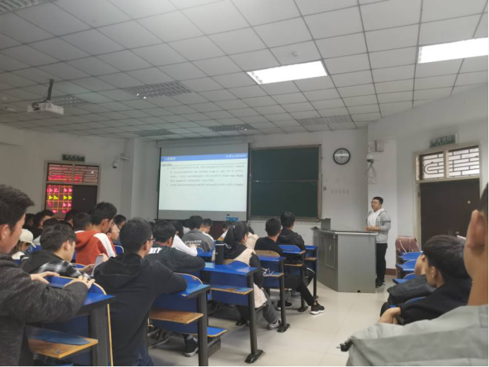 19级全体成员参加,由刘伎昭老师、企业人员、师恭义三人分三部分讲授。