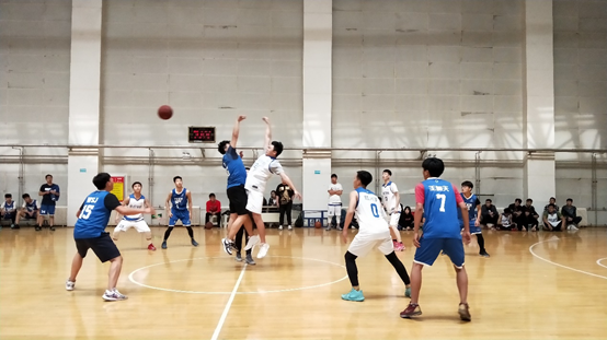 于在体育馆二楼篮球场迎接新一轮的“中工杯”之战。对战的学院为纺织学院。