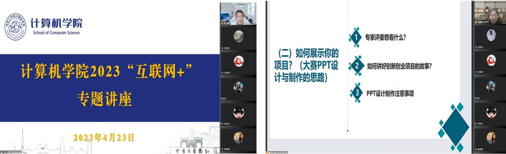 于4月23日晚通过腾讯会议举行了互联网+大赛专项辅导,特别邀请了创新创业专家刘建华教授作 “互联网+”专题讲座,学院院长张书钦、党委书记吕继东、副书记侯向花以及系部主任、副主任、赛事骨干教师及学生团队参加了此次活动。