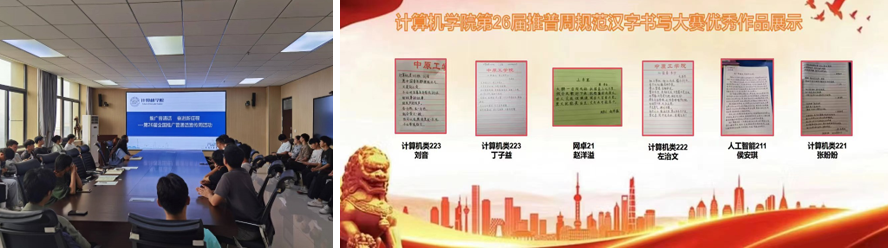 在宣传周来临之际,举行了班委、学生会推普周动员大会,领学《国家通用语言文字法》《河南省实施〈中华人民共和国国家通用语言文字法〉办法》,使广大学生增强依法、规范使用国家通用语言文字的意识,不断提高国家通用语言文字应用水平。在会上,师生进行集体推普倡议并表达了决心。学院号召全院师生用心说普通话、用规范字,加大国家通用语言文字推广力度,传承弘扬中华优秀语言文化,营造学习使用国家通用语言文字的浓厚氛围。