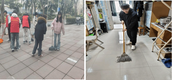 学子们纷纷投入到各项活动实践中,有的同学进行校园卫生清扫,营造整洁、优美、文明的校园环境;有的同学进行实验室消防安全卫士大检查,清扫地面、整理杂物,检查电路通风等设施,筑牢安全防线,实验室的安全卫生和环境面貌显著改善;各班级积极进行宿舍卫生大扫除,持续维护好同学们共同的“家”,培养大家形成良好的卫生和生活习惯。