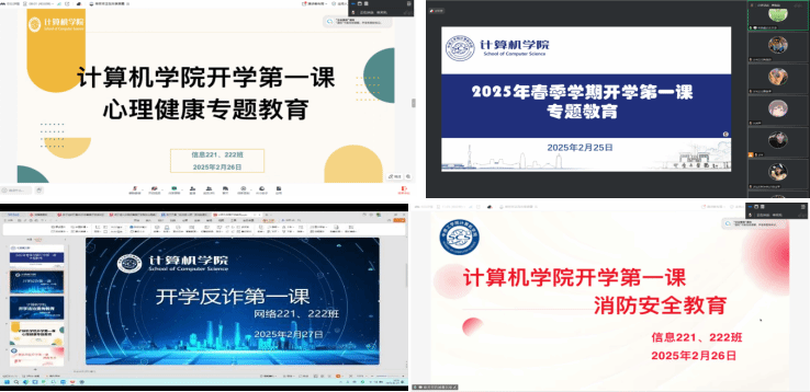 于2025年2月18日至3月7日期间,组织开展了“开学第一课”系列专题教育活动,涵盖心理健康教育、法制宣传教育、反诈安全教育和消防安全教育等四个专题,旨在为学生的新学期学习和生活奠定坚实基础。