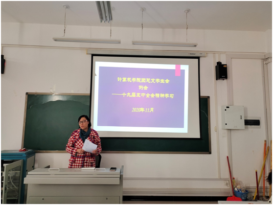 侯老师传达了共青团中央关于认真学习宣传贯彻党的十九届五中全会精神的通知。党的十九届五中全会是在我国决胜全面建成小康社会取得决定性成就,即将实现第一个百年奋斗目标、开启全面建设社会主义现代化国家新征程的关键时刻召开的重要会议,全会审议通过的《中共中央关于制定国民经济和社会发展第十四个五年规划和二〇三五年远景目标的建议》,是开启全面建设社会主义现代化国家新征程、向第二个百年奋斗目标进军的纲领性文件,是今后五年乃至更长时期我国经济社会发展的行动指南。