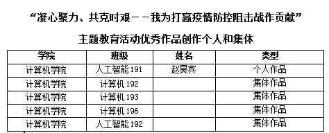附件“凝心聚力、共克时艰--我为打赢疫情防控阻击战作贡献”线上主题教育活动优秀作品