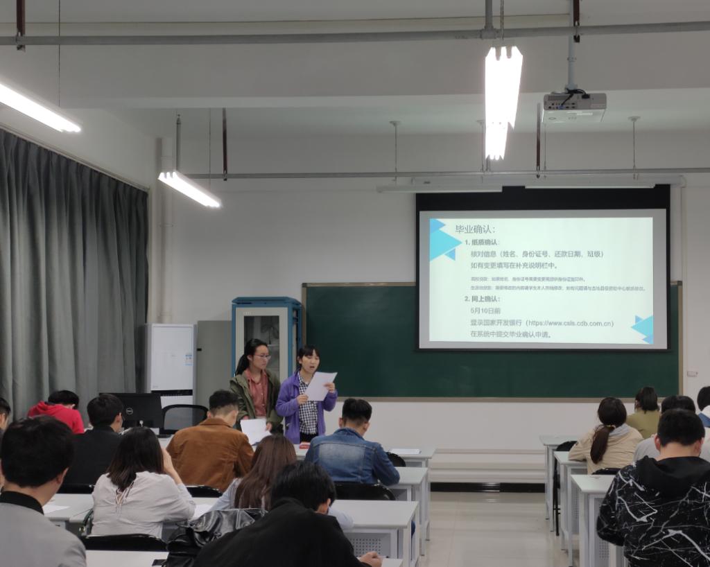 学生贷款情况、发放了《国家开发银行高校国家助学贷款还款指南》、《国家开发银行助学贷款支付宝生活号手机还款流程》等资料,指导大家熟悉国家贷款政策、了解还款流程,牢记诚信义务。之后,专门针对即将离开学校的19届贷款毕业,强调了毕业确认手续办理、毕业后还息还本流程及相关注意事项,资助助理对相关手续进行了解疑答惑,发放了《黄瓜视频