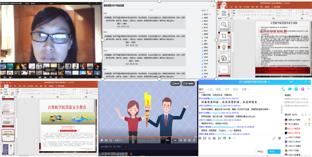 把传统的面对面会议做到了群中。我们事前仔细厘清21届高校贷款数据台账,针对高校贷款同学分别建立了企业微信群和QQ群,采取整体通知和个别提醒方式,以确保全员加群和参会,以及后续毕业确认、毕业前还款工作的顺利进行。