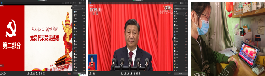 学生支部的全体学生党员,通过企业微信会议分享CCTV-1对中国共产党第二十次全国代表大会直播,习近平总书记代表第十九届中央委员会向党的二十大作报告。大家认真听取了习总书记的报告,几位党员代表分享了自己的感想:
