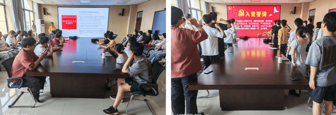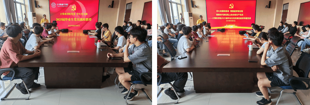 学生党支部在学院A1116会议室隆重举行“初心如磐担使命 青春逐梦新征程”2025届毕业生党员离校教育活动。学院党委副书记侯向花、学生党支部书记于倩静、王腾及2025届全体毕业生党员参加活动。