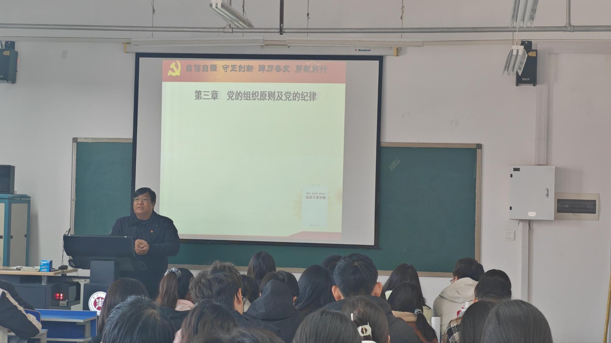 在3号组团楼A908教室举办“中国共产党的组织、纪律和作风及党的宗教工作方针政策”专题党课。本次党课为学院系列党课第三讲,由人工智能学院直属党支部副书记张志鹏主讲。