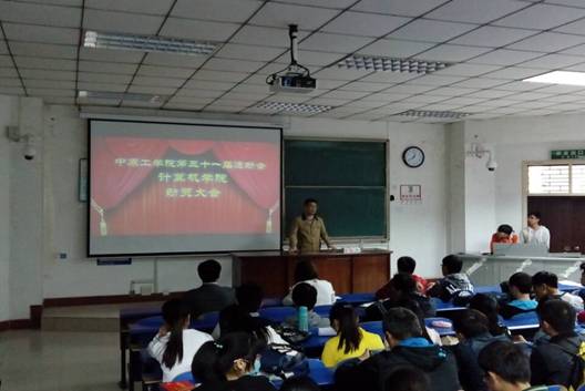会上,学工办主任孙一修指出,本届运动会要在认真总结经验的基础上,锐意进取,开拓创新,争创佳绩。第30届运动会运动员代表陈晓慧为在座的运动员做了赛前指导,希望运动员要不怕吃苦,不怕累,积极为学院争光。同时本届运动会参赛运动员14届代表张婷、15届代表谢刘瑞上台发言,表示愿尽自己最大努力为院取得成绩。