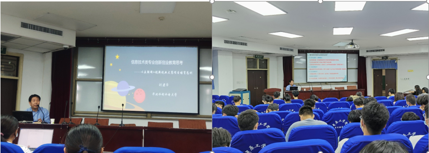 师生作了题为《信息技术类专业创新创业思考——以“互联网+”创新创业大赛项目培育为例》的“互联网+”专题讲座。