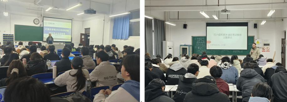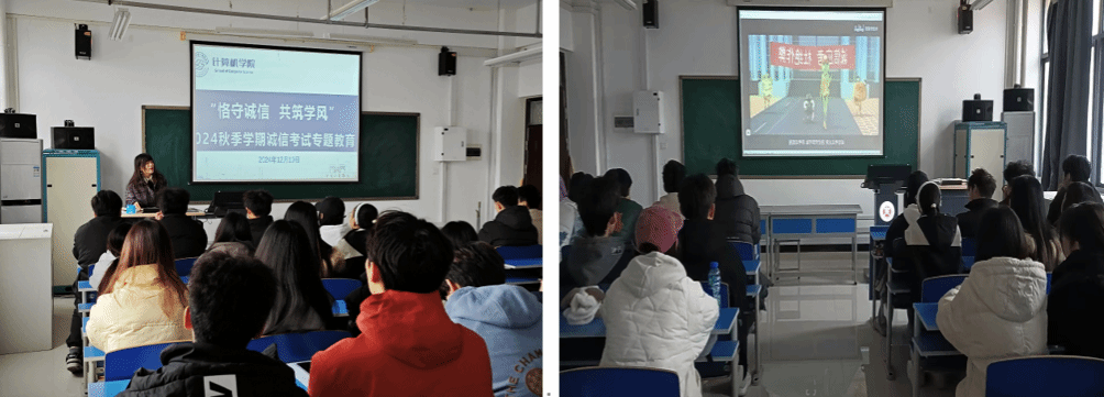 24秋季学期期末临近,为强化学生诚信意识,塑造良好学风, 黄瓜视频 发起“恪守诚信 共筑学风”活动,各班级围绕“诚信考试”展开主题班会,辅导员、班主任以案说纪,学生进行“诚信”大讨论,观看国家教育考试考生诚信教育宣传片,全体学生郑重签订《诚信考试承诺书》。通过深刻剖析作弊等违反校规校纪行为的严重性与危害性,警醒学生珍惜个人名誉,恪守诚信原则。同时依托“计忆中工”微信公众号平台大力宣传诚信,引领全院学生积极参与,实现诚信全面教育,营造学风良好氛围。