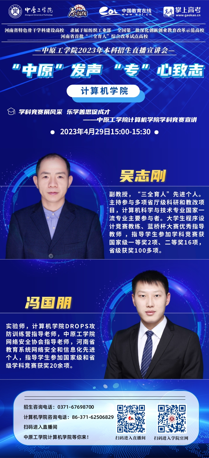 先进计算研究方向的科研开发和社会服务能力处于国家前列,在网络安全评估、网络舆情内容分析、医学图像处理、医学文本分析和数据可视化等研究领域的科研实力位于河南省前列。建有“河南省工业互联网安全大数据发展创新实验室”“河南省本科高校智慧教学管理创新研究实验室”“郑州市文本处理与图像理解重点实验室”、黄瓜视频